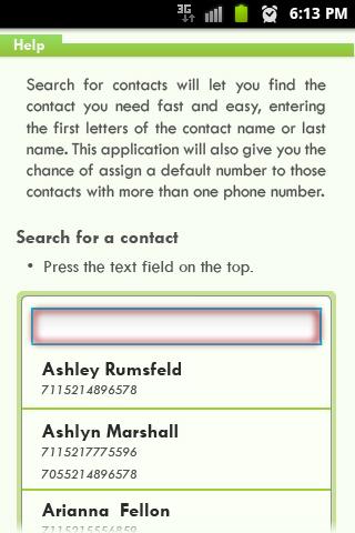 Search for contacts is an easy and fast way to find your phone contacts, this great app will make your searches more effective and comfortable, by allowing you access your contacts info immediately. There’s no need to enter a contact full name again to look for it, you just have to enter the first letters of the contact name or last name to find it. You can even choose a default number for a contact with multiple phones.
