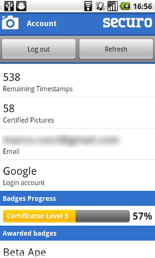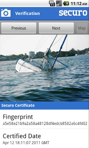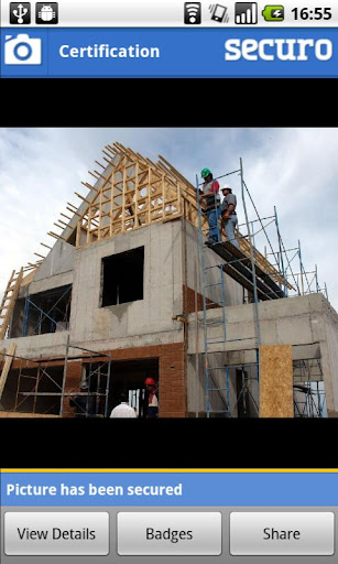 2. Take a picture with Securo Mobile! Your photo is securely timestamped and its integrity guaranteed.