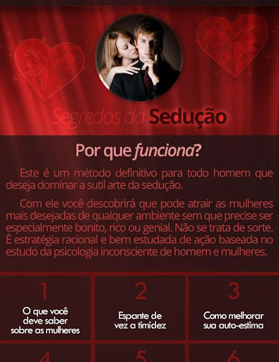 Também conhecido como Sedução Magnetica, este é um aplicativo com um método definitivo para todo homem que deseja dominar a sutil arte da sedução.