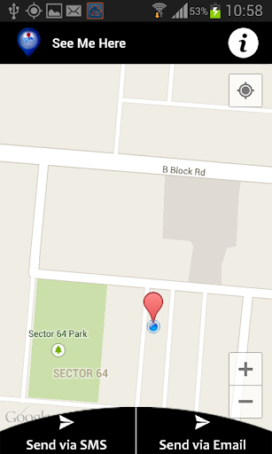 3. Tap either “Send by SMS” or “Send by E-mail” and bingo, your location coordinates are gone to the recipient (they don’t even need the App to be in their device, just a mobile with map – very common these days, no?).
