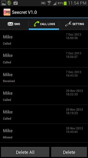 Seecret is a privacy application that gives users the freedom to hide their smses and phone logs secretly. The user will have to select the person whom he intends to hide into the Seecret list. Any outgoing or incoming call from the Seecret list will not leave any traces in the phone logs. Seecret can only be opened via a secret code. The icon of this application will not be shown on the launchpad. Nobody will even know that this application exist on your mobile phone except yourself. To startup this application after installation, dial 1234 and hit the call button. Seecret will magically popup! User can also change the default password.