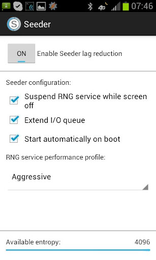 Seeder is a service for root users. It assists the kernel in "topping off" the entropy pool by re-seeding it with data from the non-blocking (high performance) random device. Optionally, it can also help alleviate MMC I/O contention by extending the I/O queue, allowing the I/O scheduler to make better decisions, and combine more writes.