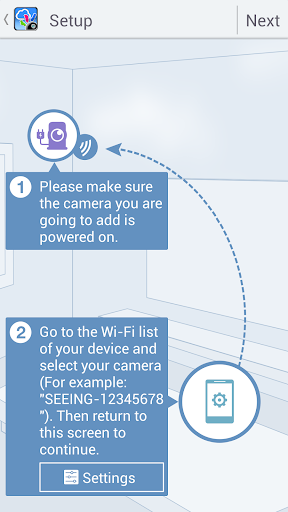 With the SeeingCloud App you cloud see everything what your Seeing Wi-Fi Smart Cam see on your smart phone. The camera and the client app require an Internet connection to connect with each other and save recorded video to the cloud.