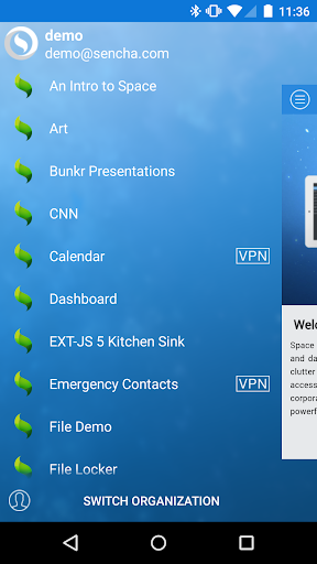 Benefits for end users: With Sencha Space, users can feel confident using their Android device for business purposes, because their business bookmarks are managed and kept completely separate from their personal browsing and app use. And they can have collaborative web experiences with fellow employees, because everyone at their company using Space will share a common backend in the cloud, managed by their corporate IT team.