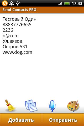 Send Contacts PRO allows you to send information about your contacts as text by SMS, Email, and any other application that can send text. Send Contacts PRO makes your life easier! You simply choose a contact and Send Contacts PRO App gives you all existing information about contact phones, emails, adresses and websites. Then you simply choose what contact information you want to send... and send it!