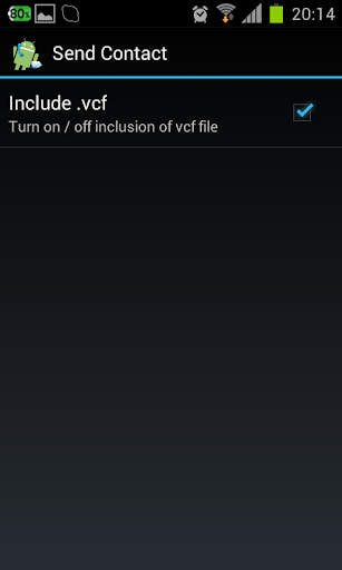 With this app, contact information will be included in the body of email or SMS. If you want, you can send also the .vcf as attachment.