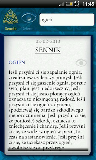 Wszystkie opowiadania senne powinno się zapisywać aby dokonać ich interpretacji z perspektywy czasu. Aplikacja umożliwia prowadzenie dziennika snów.