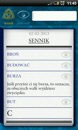 Aby otworzyć sennik, połóż na nią palec i chwilę przytrzymaj.