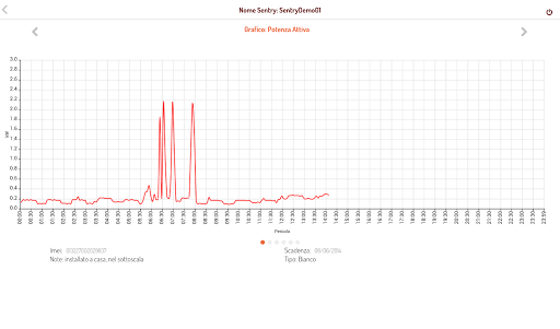 Sentry Touch consente la visualizzazione su smartphone Android dei grafici relativi al sistema di monitoraggio energetico SENTRY Energy Profiler.