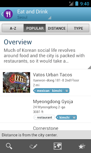 ★ Suggestions of what's interesting to see and do in Seoul Travel, depending on time, weather and your location;