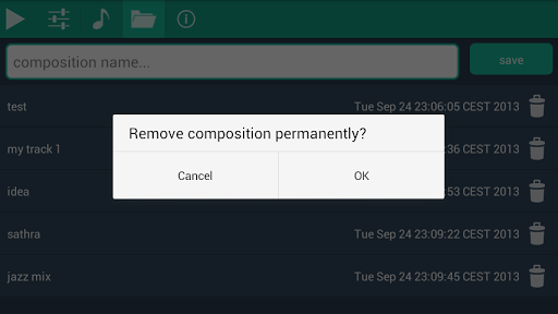 Modify composition parameters, set tempo, mute or unmute single tracks.