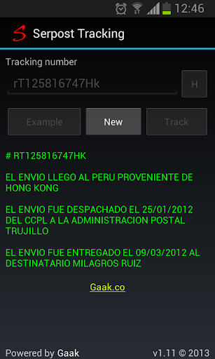 The first tool to trace a tracking code of Postal Services in Peru (Serpost). Just enter a valid code and go. No matter which country comes the package, includes examples from Germany, Hong Kong, United States, all departing Peru. The History option will remember your previous inputs so you do not type it again.