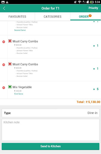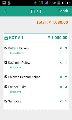 The App's simple UI enables table listing, order customization with food preferences, processing KOT instantly to kitchen, merge & split orders, pre-defined discounts on bill by syncing with backend POS server.