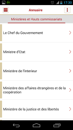 - A l’annuaire de l’administration, espace informant sur les coordonnées physiques et électroniques de certains services de l’état et institutions publics.