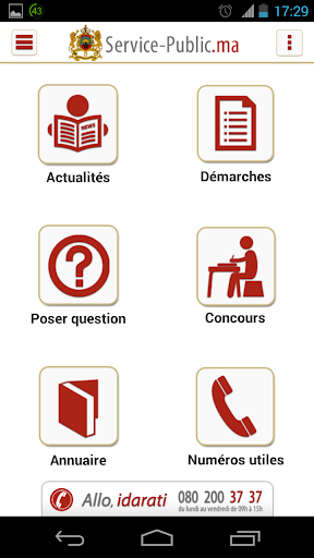 « ServicePublic » est une application bilingue (Arabe/Français), permettant la diffusion au grand public des informations sur les démarches administratives, les coordonnées des services publics et les avis de concours de recrutement concernant les services de l’état, les collectivités territoriales et les établissements et entreprises publics.