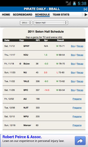 -The Seton Hall Pirates' full schedule with quick-view access to full game boxscores and player stats