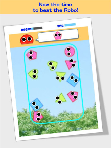 Circle, triangle, square, star, diamond, heart mark and so on. Find the figure with the same shape and color Robo asked.