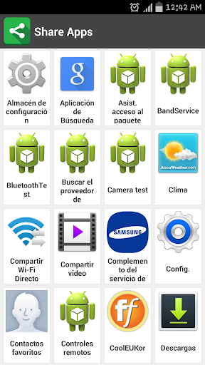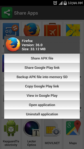 Share apps show your applications with a list, you can get a installation package directly from your momery and send it to your friends as a attachment.