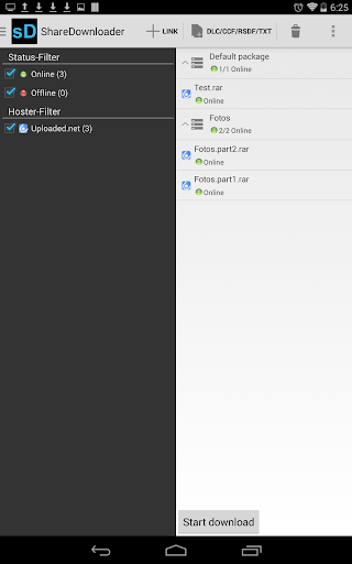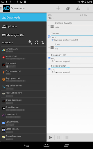ShareDownloader is a new Android app, which combines the various 1-click-hosters in one app. Share Downloader offers among other things, like file-, download- and upload-manager. Further accountinformation can be requested over the app, suchas points, credit, traffic etc. Share Downloader can also decrypt and process DLC - Container. The download manager will resume the downloads after a connection crash automatically or waits as long as WLAN is not available. Of course you can process usual HTTP-downloads with ShareDownloader.