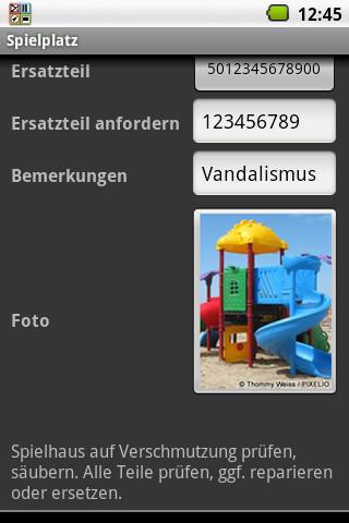 Photos with integrated GPS information supplement the documentation. Direct call fields can help to establish phone contact from inside the form. Signature fields allow entry of hand written signatures for the approval process.