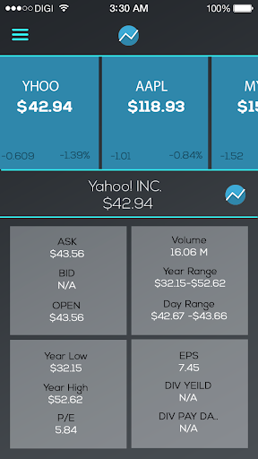 • Search and track stocks and follow them universally from your iPhone and iPad