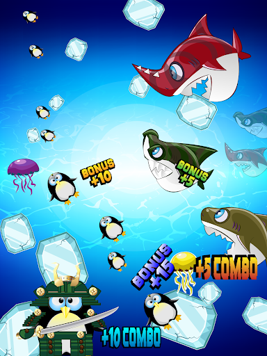 Your mission is to protect the penguins to swim across the sharks area to the safety place. Use your samurai sword to destroy all the sharks that are chasing behind. Collect all the jellyfish that give you more power along the way.