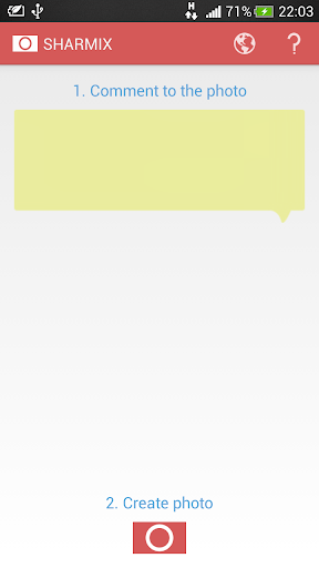 Sharmix是有照片的帮助下,它允许用户有乐趣的照片和评论易于沟通的新服务。您拍照并取回从普通用户一杆从世界任何地方。在拍摄照片时,你会被提示输入图片上的未来的注释,然后移动相机,拍摄照片和图片发送给任何人。休闲人从你的照片和评论,作为回报,你会得到从另一个素不相识的人的照片。其结果是图片和好心情的美好交流。没有人知道是什么的照片和来自哪个国家,你将获得换取你的,也可以是一道亮丽的风景,日落的海岸,度假或一些更有趣的图片。