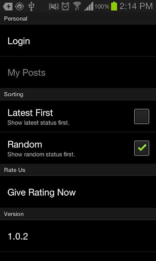 This app contains Shayeri for Love, Life, Friendship, Broken Hearted, Love Tagalog, Relationships, Facebook Status, Couple, Happiness, All Occasions, Teens, Friends, Girlfriend and Boyfriend.