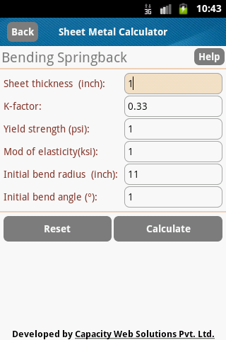 The user just need to enter simple basic measurements of the Metal Sheet like its thickness, Bend Radius, Bend Angle and it would calculate very complex calculations like the bending allowance length, the Set Back, length and the Bend Deduction in case you choose to calculate the Bending Allowance of the Sheet Metal.