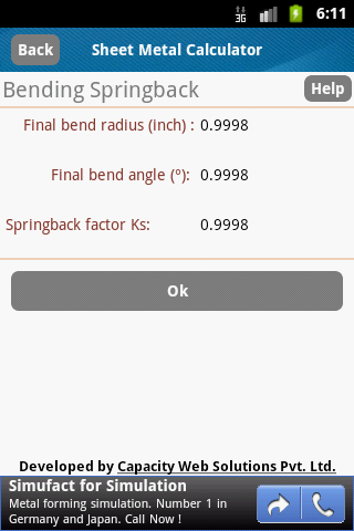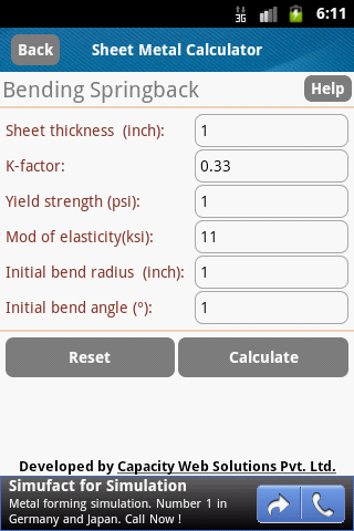 The user just need to enter simple basic measurements of the Metal Sheet like its thickness, Bend Radius, Bend Angle and it would calculate very complex calculations like the bending allowance length, the Set Back, length and the Bend Deduction in case you choose to calculate the Bending Allowance of the Sheet Metal.