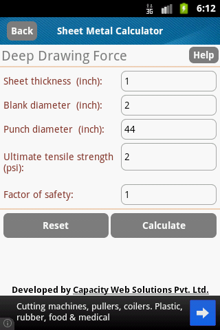 Sheet Metal Calculator is an easy to use and a Quick tool to estimate the different types of very large procedural calculations of Sheet Metal like the Bending Allowance of a metal, Metal’s Spring Back force, the V-Bending Force of a metal, Wipe Bending Force and last but not the least, Deep Drawing Force.