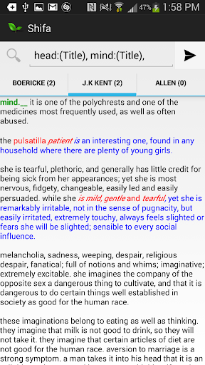Search Materia Medica with three different books Allen, Kent ,& Boericke