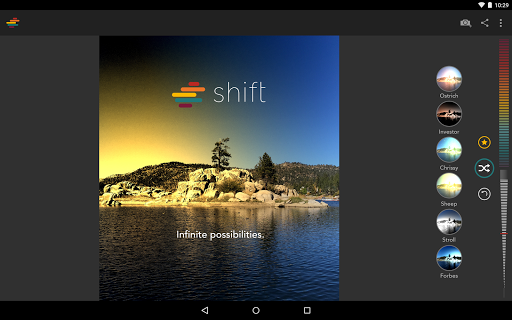 Tap into your inner artist. Shift—infinite photo filters designed by you.
