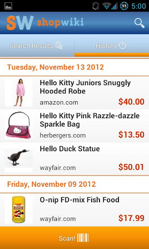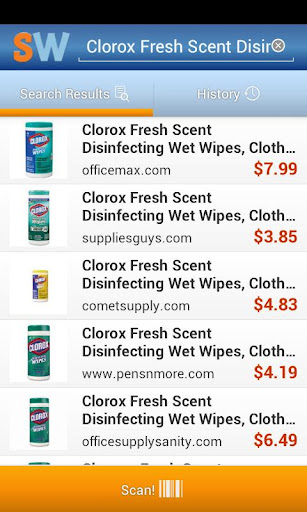Scan UPC or EAN barcodes while shopping on the go to find the lowest prices. Discover new online retailers or just check to make sure you have a good deal in a physical store.