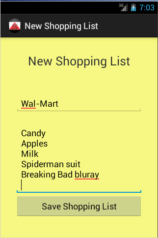 Extremely simple app that lets you create a shopping list. There are no fancy features, but that is what makes this app so user friendly. Starting a new list is just one click away and viewing it is as easy. Once you create a new list, the old one gets deleted and overwritten.