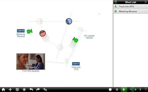 Shot Designer is a ground-breaking tool for Directors and DPs that creates Animated Camera Diagrams, with integrated Shot List, Storyboards, Professional Director's Viewfinder, and Sync & Team Sharing via Dropbox.