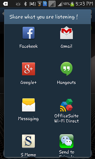 + Share tracks that you are listening, with your friends on social networking sites & apps