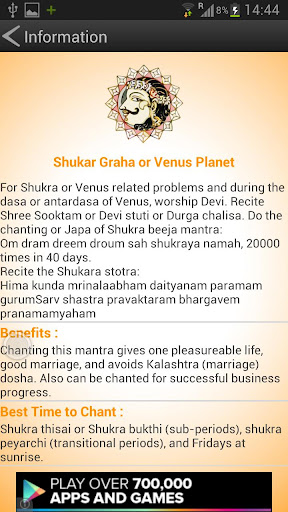 This application also including the information part where a user can get the solutions of his/her problem regarding that particular graha.