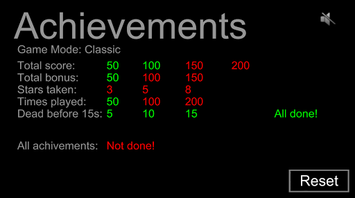 Time Attack: Get as much points in 30 seconds as you can! You don't get points every second only from flying close to enemies and taking stars. If you manage to stay alive all 30 seconds you get 20 extra points!