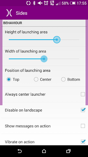 Sides defines two side launchers that can be called simply swiping from outside the screen. Each launcher can emulate functional buttons on your phone or contain up to 20 toggles and apps.