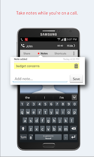 - Add notes before, during, or after any call: “Appointment with Brian at 10.”