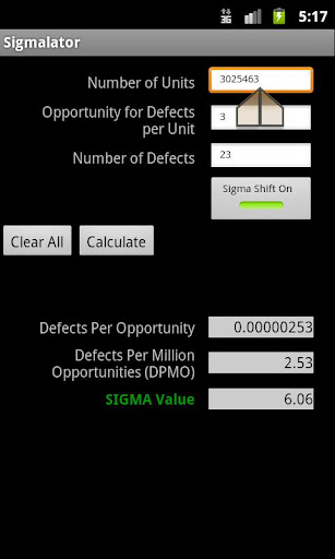The question is often asked, “What Sigma Level Are We?”. Sigmalator is designed to take the number of defects/errors in a process and calculate a sigma value.