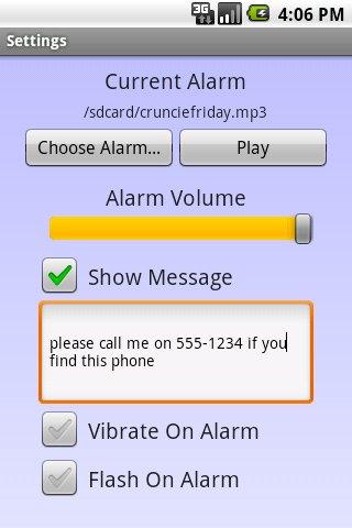 Silent Finder can be configured with custom sounds and a message to display in the event of an alarm.