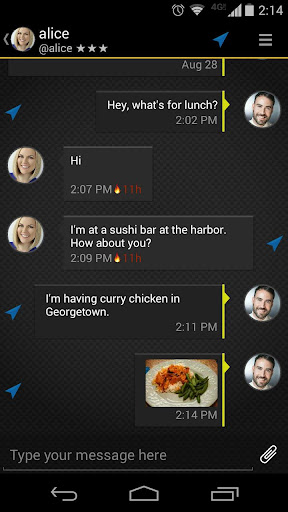 • Burn Notice feature allows you to have any message you send self-destruct after a time delay