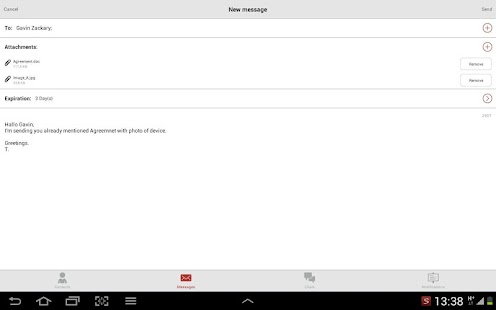 * In addition to sending standard documents and files Silentel client application offers to take a picture or video (using camera), record an audio and send it as a file to any recipient in an easy and simple way.