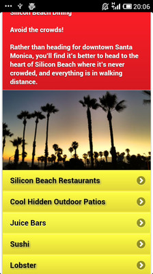 “硅滩”是用来描述这一领域的沿海滩,承载大,越来越多的高科技初创企业和投资者为中心的名称。该应用程序揭示了所有的硅海滩娱乐秘密,将指点你鲜为人知的有趣的地点,餐饮,饮水,购物,跳舞,和在海滩上的乐趣。