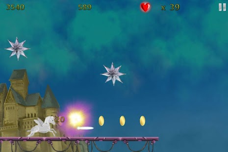 The game will start slow but speed will slowly increase and enemies will be harder. Download and enjoy this free flying adventure game of Silver Unicorn Apocalypse Wars - Epic Dragons Castle Attack Story.