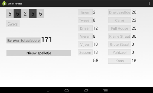 De meest simpele Yahtzee. In het Nederlands. Helemaal gratis, zonder reclame en andere poespas.