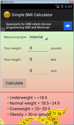 Simple BMI Calculator - Body mass index (BMI) is a measure of body fat based on height and weight that applies to adult men and women.