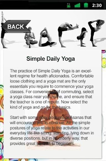 The practice of Simple Daily Yoga is an excellent regime for health aficionados. Comfortable loose clothing and a yoga mat are the only essentials you require to commence your yoga classes. For convenience of commuting, select a yoga class near your home, and ensure that the teacher is one of repute. Now select the kind of yoga and go for the basics.